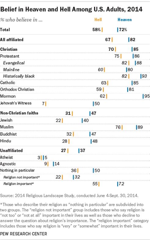 Did you know a 2014 Pew study (see below) showed that a huge portion of the people in the United States believed in Heaven but at the same time did not actually believe in Hell? Obviously one could not really exist without the other, right?